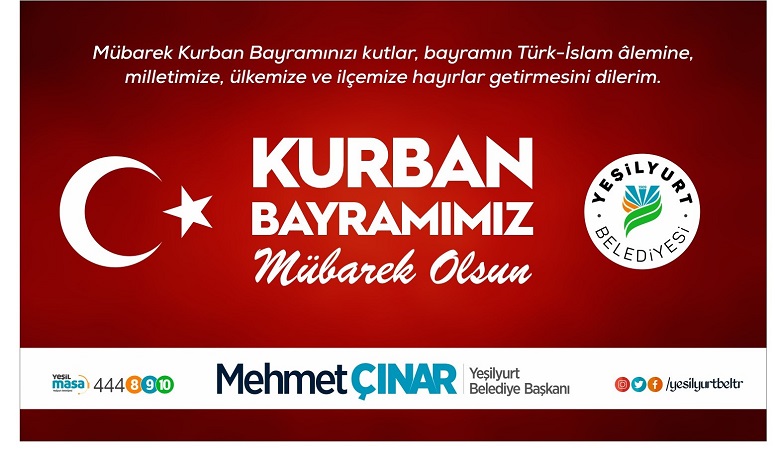 Kurban Bayramı dolayısıyla bir kutlama mesajı yayımlayan Yeşilyurt Belediye Başkanı Mehmet Çınar, “Bayramlarımız, millet olma şuuruna ermenin, ortak değerlerimizi güçlendirmenin ve aramızdaki bağları geliştirmenin de vesilesidir. Bayram vesilesiyle yapılan ibadet, dua ve kesilen kurbanların Allah katında kabul olması en büyük temennimizdir. Bu mübarek günlerde yardıma muhtaç durumdaki kardeşlerimize şefkatle yardım elimizi uzatmalı, mağdurların yanlarında bulunmalı, kardeşlik bağlarımızı daha da güçlendirmeliyiz.