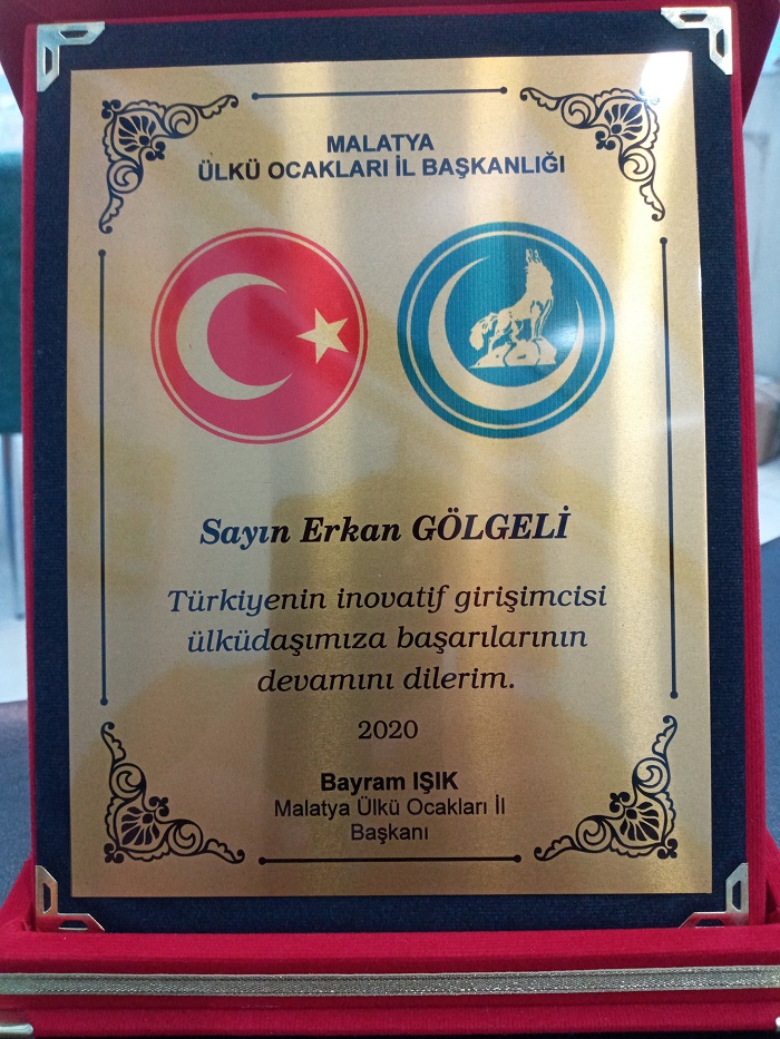 Malatya Ülkü Ocakları il  başkanı Bayram Işık Ülkü ocakları  il binasında  yaptığı açıklamada; “Bugün kutlu dergahımızda,Türk  Bankacılık sistemine  ve Türk ekonomisine  “Karekodlu Çek sistemi” isimli buluşu ile 7  yılda yaklaşık 70 Milyar TL’lik katkı sağlayan ,camiamıza yıllardır gönül veren hemşerimiz, ülküdaşımız, ülkemizin  önemli inovatif girişimcisi Erkan Gölgeli’yi tebrik etmek ve günün anısına  plaket sunumu için bir araya gelmiş bulunuyoruz.” dedi.